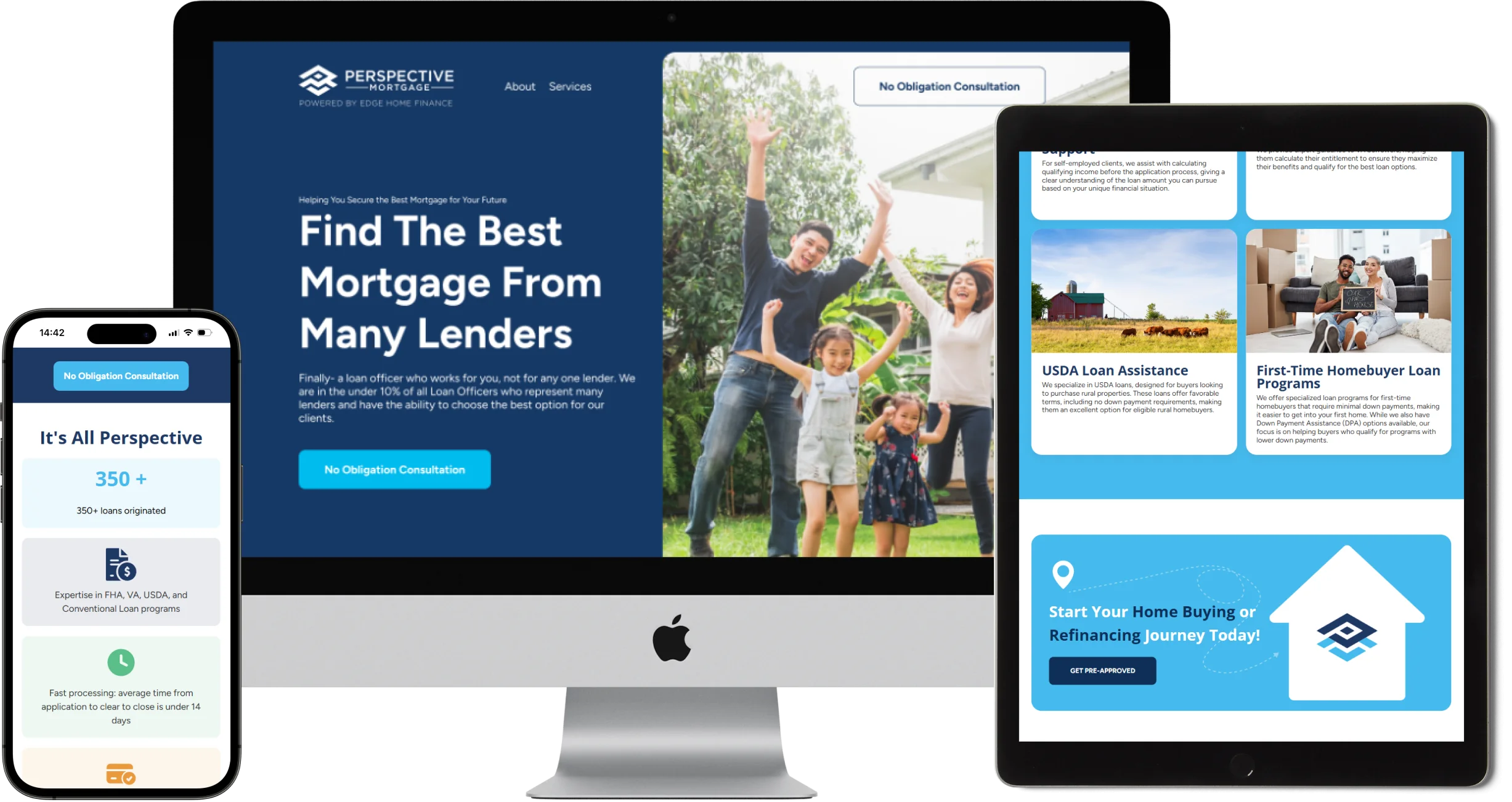 As a newly launched mortgage brokerage, Perspective Mortgage needed more than just a website — they needed a digital presence that establishes credibility, builds trust, and communicates their unique value proposition to homebuyers navigating an overwhelming process. Their key differentiator? Unbiased, personalized mortgage solutions — unlike most lenders, they’re part of a small group of brokers who can source loans from any provider, ensuring the best fit and savings for their clients.