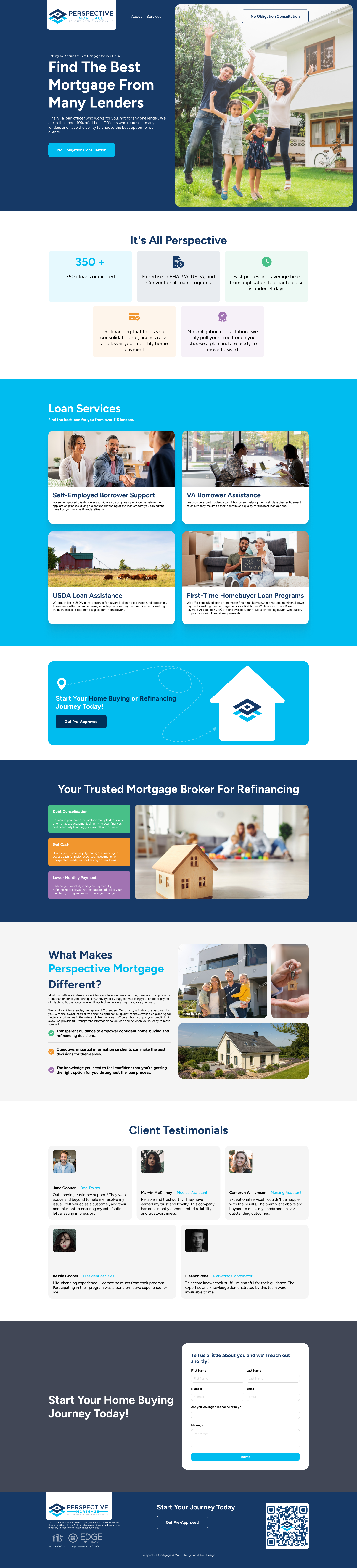 As a newly launched mortgage brokerage, Perspective Mortgage needed more than just a website — they needed a digital presence that establishes credibility, builds trust, and communicates their unique value proposition to homebuyers navigating an overwhelming process. Their key differentiator? Unbiased, personalized mortgage solutions — unlike most lenders, they’re part of a small group of brokers who can source loans from any provider, ensuring the best fit and savings for their clients.