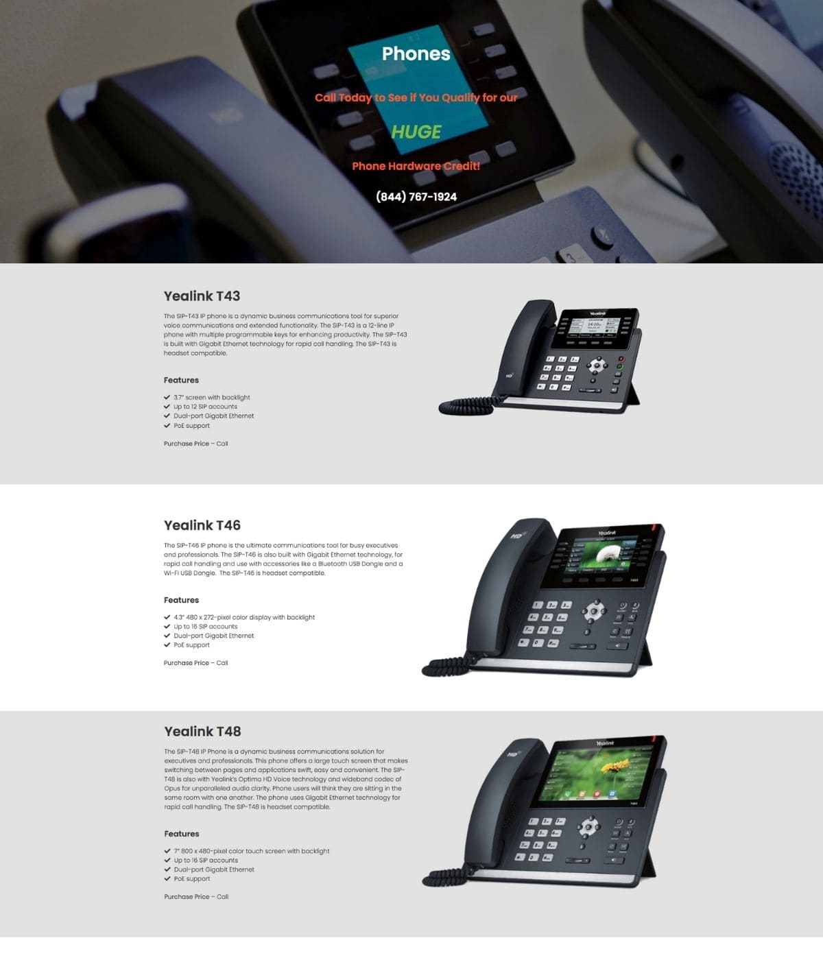 The primary goal for this site is to drive leads for businesses seeking new VoIP services. The site was designed to align with professional industry standards and branding practices. SEO and content teams worked together to create landing pages for each service type offered to earn top rankings in search engines. Click to call buttons are also strategically placed throughout the site to assist in driving leads.