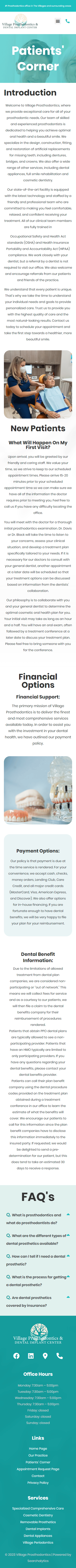 In an effort to capture the patient-first approach Village Prosthodontics takes, we developed a Patient’s Corner page to serve as a comprehensive resource. Here, first-time or returning patients can answer many questions about their visit such as, what to expect, financing options, and FAQ’s. We’re proud to partner with Village Prosthodontics and develop a digital experience that encapsulates the professionalism and commitment to patient care that defines their practice.