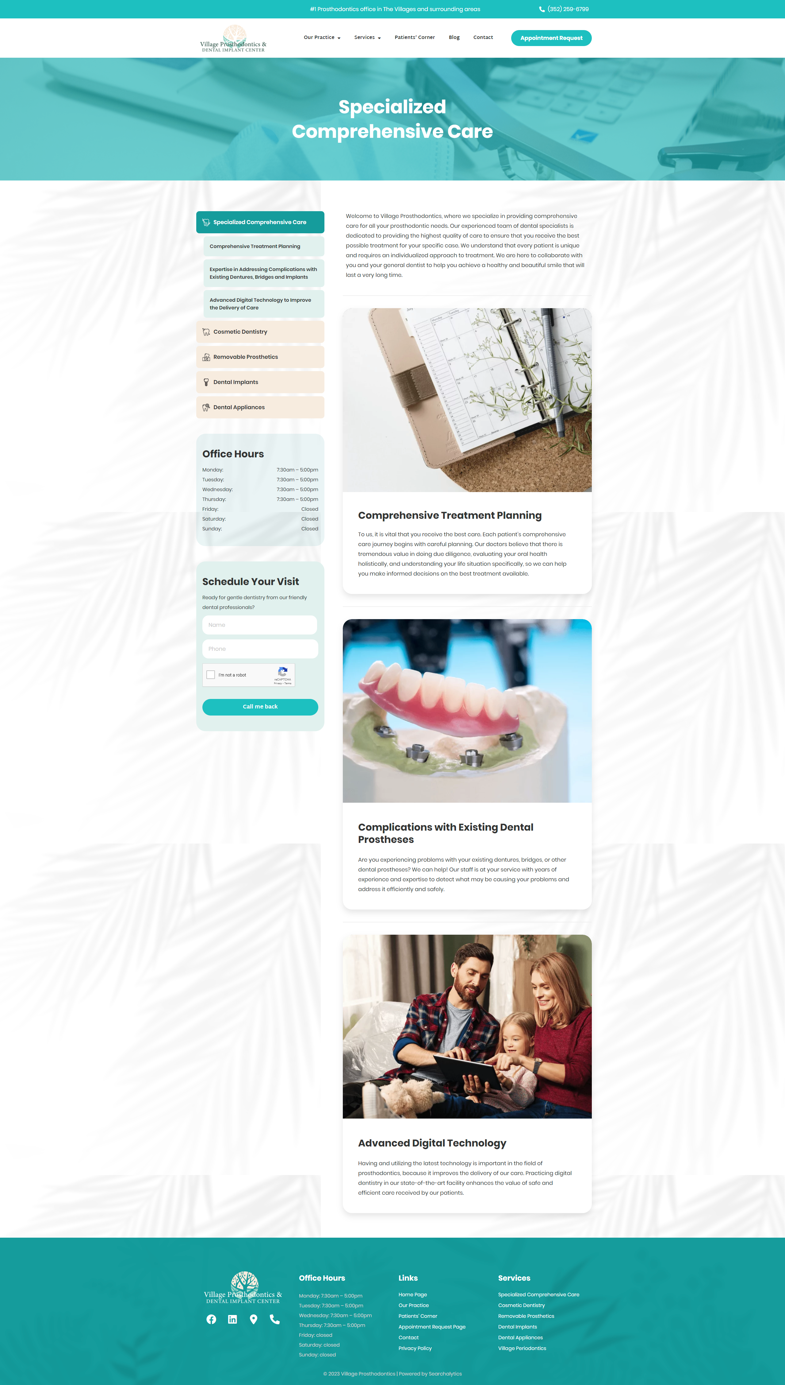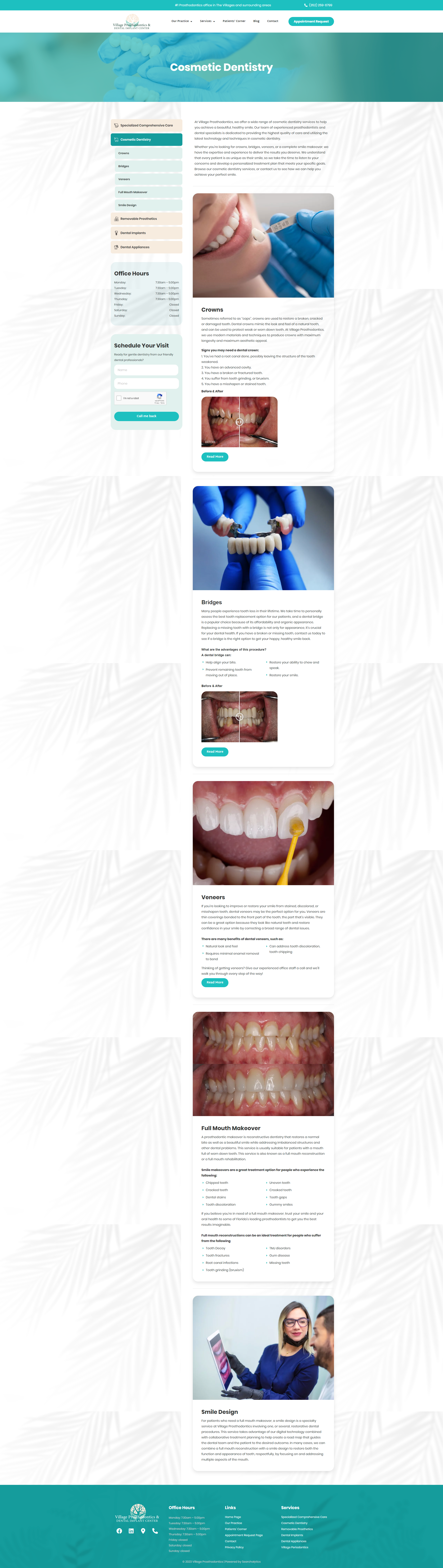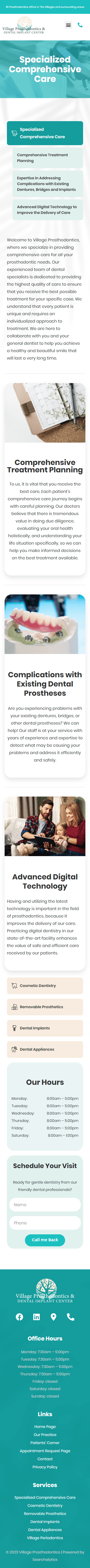 The service pages of Village Prosthodontics were an important focus for us. Each service was detailed to provide visitors with a clear understanding of the specific procedures, techniques, and benefits involved. This approach aimed to educate and empower patients, helping them make informed decisions about their oral health.