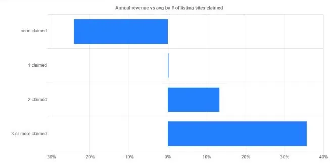 This shows the correlation I just mentioned. It’s pretty simple to understand, the more business listings you claim and actively partake in, the more revenue you’re able to make. This could be a result of many different interactions. Google and search engines constantly crawl sites for information, and with more claimed business listings, the more you’ll have consistent information, and the more likely you are to show up at the top of a SERP (Search Engine Results Page). This is SEO, and it ties back to everything, even reviews! Long story short, claim your business listings on multiple sites – it’s for your own good!